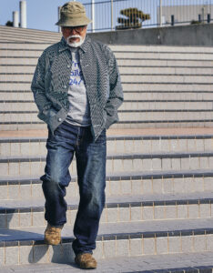 11.5ozセルビッチデニムを使用し、定番「222」の美しいストレートシルエットで仕上げた加工モデルジーンズ。着用約3年の経年変化を想定し、ナチュラルな色落ちを丁寧に再現しました。過度な演出は避けながらも、ヒゲや各所のアタリはしっかりと表現。派手さではなく、“本当に穿き込んだかのようなリアリティ”を追求した仕上がりです。