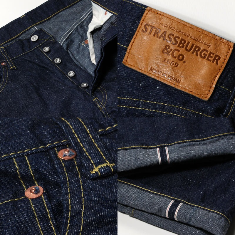 経糸にJUMBO7番、緯糸にナチュラルネップを使用したオリジナルファブリック『SMALL LUMP SELVEDGE』12ozデニムのストレートジーンズ。経糸のムラ感と緯糸のネップ感が雰囲気の良い一本。 クセのないベーシックなストレートジーンズなので、ブーツやスニーカー選ばず合わせることができワードローブの軸になるジーンズです。デイリーに穿ける扱いやすさの中に、セルビッチデニムならではの無骨さと、ちりばめられたネップの存在感が組み合わさった、使いやすく特徴的な表情のアイテムです。