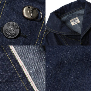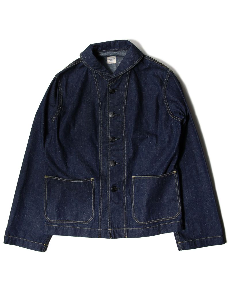 1940年代に米海軍で採用されていたショールカラーデニムカバーオールを忠実に再現したモデル。無骨なデニム地に特徴的なショールカラーを備え、ワークとミリタリーの両面を感じさせる存在感ある一着です。