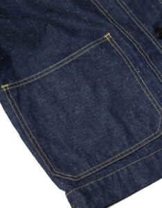 デニムにはSMALL LUMP NEP DENIMを採用。ところどころに見えるネップが特徴的な12ozのセルビッチデニムです。着込むほどにデニムの色落ちやアタリが現れ、自分だけの一着へと育っていきます。ワークウェアとしての実用性と、ミリタリーウェアならではの存在感を兼ね備えた、クラシックなアイテムです。