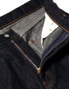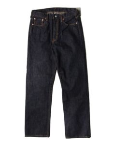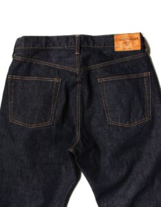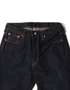 緯糸に茶綿を使用したセルビッチデニム『JUMBO DENIM』を使用した、ベーシックな王道ストレートシルエット『222xx』のジップフライタイプ。