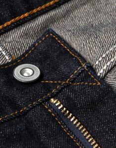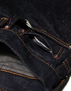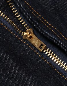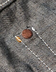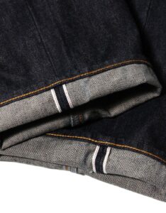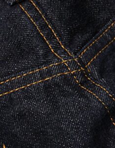 縫製糸には中心のスパン糸を綿糸で包んだ『コアヤーン』を使用。強さを持ったスパン糸と使用により色落ちする綿糸、両方の良さを兼ねそろえたジーンズを長く楽しむために最適な縫製糸で縫い上げました。