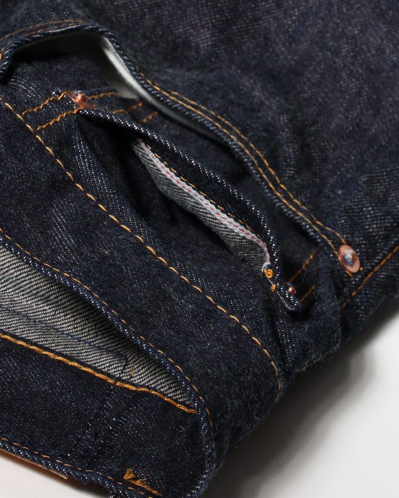 14.5ozの赤耳セルビッチデニムを使用。穿き込むほどにあらわれる色落ちは通常デニムでは味わえない風合い豊かなエイジングが期待できます。