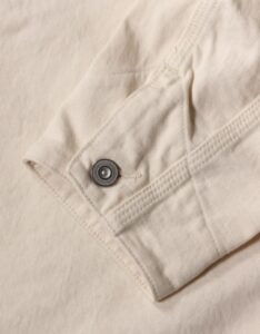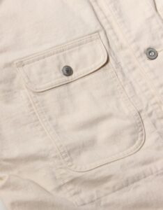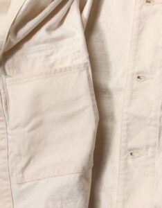 使用しているコットンコーデュラ生地は、備後地区でも屈指のデニムメーカーが手がけた約12オンスのブロークンツイル。摩擦堅牢度に優れ、ワークウェアとしての高い耐久性を備えながら、ナチュラルな色合いがヴィンテージのような風合いを醸し出します。機能性と表情を兼ね備えた、国産ならではのクオリティを実感できる良質なファブリックです。
