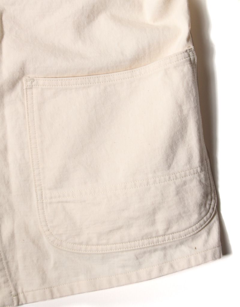 使用しているコットンコーデュラ生地は、備後地区でも屈指のデニムメーカーが手がけた約12オンスのブロークンツイル。摩擦堅牢度に優れ、ワークウェアとしての高い耐久性を備えながら、ナチュラルな色合いがヴィンテージのような風合いを醸し出します。機能性と表情を兼ね備えた、国産ならではのクオリティを実感できる良質なファブリックです。