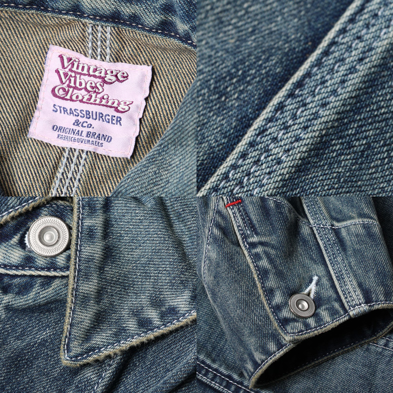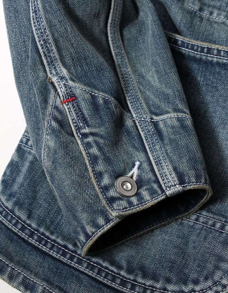 長年ワークウェアとして使い込まれたかのような色落ちやアタリを表現。襟や袖口など風合い豊かな表情を見せるエイジングです。