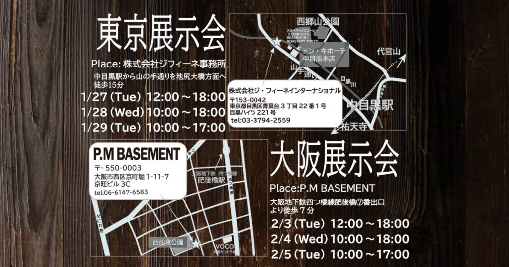 展示会および期中展を、東京・大阪の2会場にて開催いたします。
