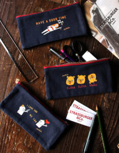 ハンドルミシンを使った刺繍アーティスト『Doodle50』とのコラボペンケース。